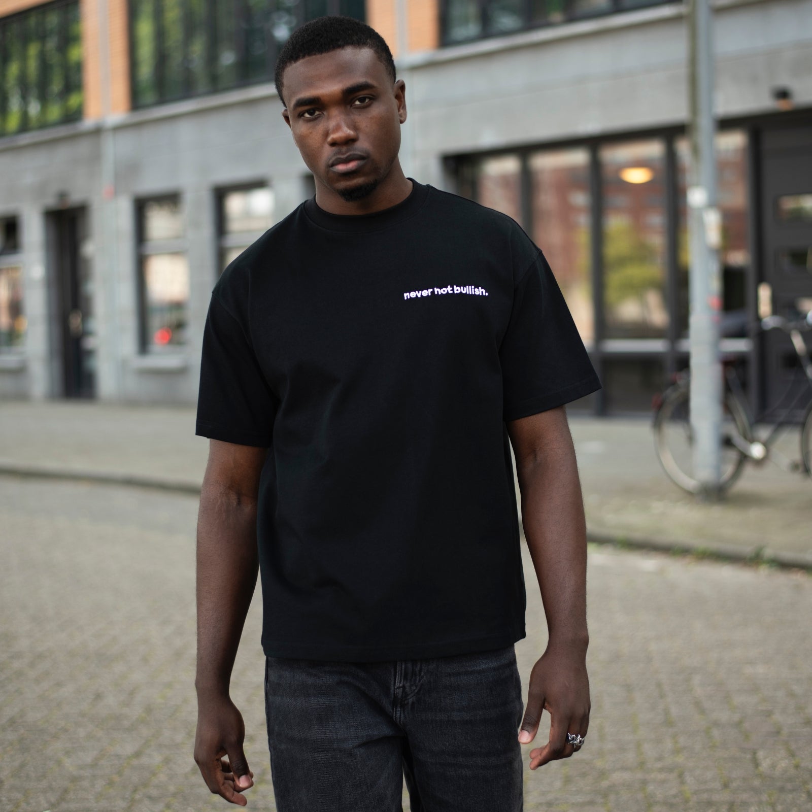 This T-shirt is an oversized straight fit with a drop shoulder.